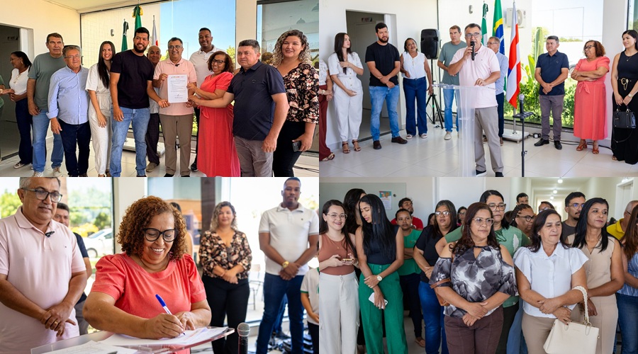 O ato foi realizado na sede da Secretaria Municipal de Educação e contou com a presença do prefeito Marcos Palmeira, da secretária de Educação Neila Regis, de vereadores, secretários municipais, autoridades locais e representantes da comunidade escolar.